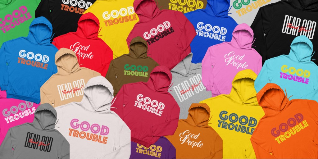 Brooke Deron Apparel is an eccentric streetwear brand that spreads positivity through empowered tees, hoodies, and athleisure wear. They feature sayings such as “Dear God Thank You,” “Good People,” “Manifesting Blessings,” and “Worthy,” and our top seller, “Good Trouble.”